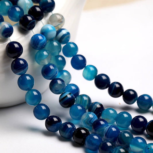 Blå stribet agat, naturlig ædelsten, rund sten 4mm 6mm 8mm 10mm 12mm 15''