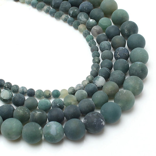 Moss Agat Mat, Naturlig Ædelsten, Rund Grøn Sten 4mm 6mm 8mm 10mm 12mm 15''