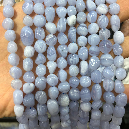 Blå blonde agat, naturlig ædelsten, ægte sten, glat nugget rør 8-12 mm
