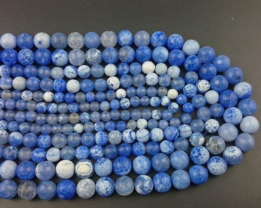 Blue Fire Agate facetteret, naturlig ædelsten, rund sten, 6mm 8mm 10mm 12mm 15''