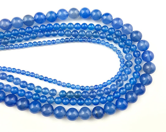 Blå agat, naturlig ædelsten, rund sten 4mm 6mm 8mm 10mm 12mm 15''