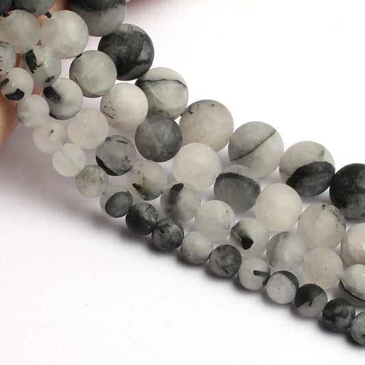 Sort rutileret kvarts mat, naturlig ædelsten, rund krystalsten 6 mm 8 mm 10 mm 15''