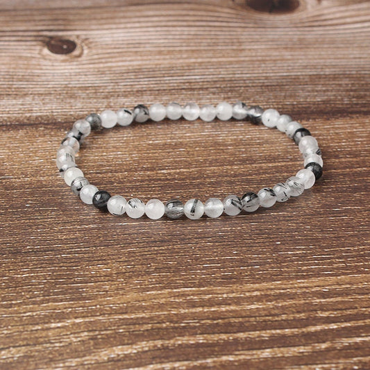 Sort rutileret kvartsarmbånd Krystalarmbånd Stenperler Armbånd 4mm 6mm 8mm 10mm 12mm 8''