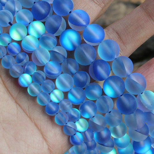 Blåt glas mat, løs ædelsten, rund løs 6mm 8mm 10mm 12mm 15''