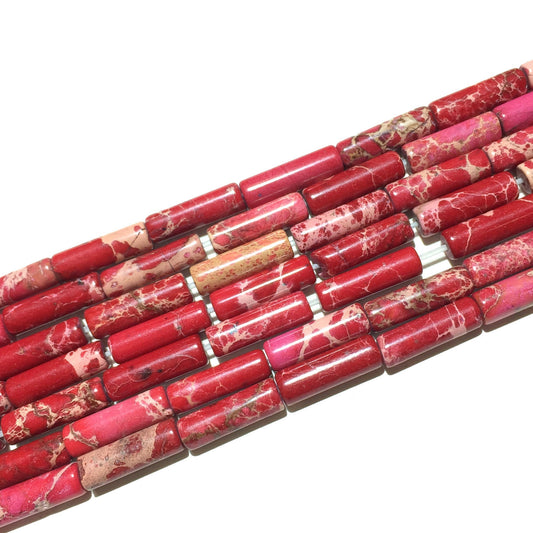 4x13mm Red Impression Jasper Tube Beads 15''