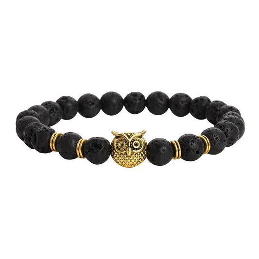 Bracelet en lave avec breloque tête de hibou animal 8 mm 7,5''