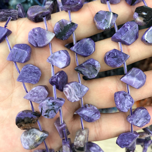 Perles de charoïte véritable en forme de larme, 12-15 mm, 24 pièces