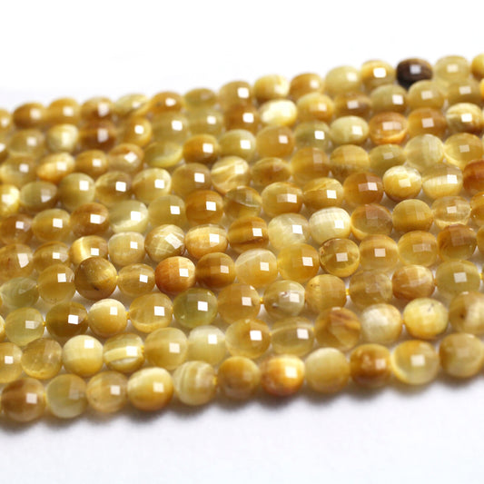 Perles à facettes en œil de tigre jaune, pierres précieuses naturelles, 4 mm, 6 mm, 15 pouces