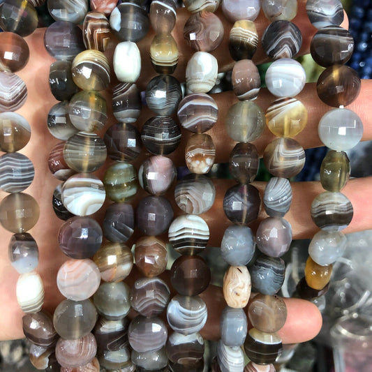 Perles à facettes en agate du Botswana 8 mm 10 mm 15''