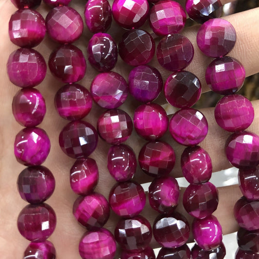 Perles à facettes en œil de tigre rose, pierres précieuses naturelles, 8 mm, 10 mm