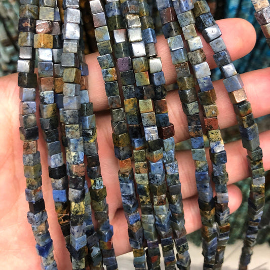 Perles cubiques en pierre de dumortiérite arc-en-ciel 4 mm 15''