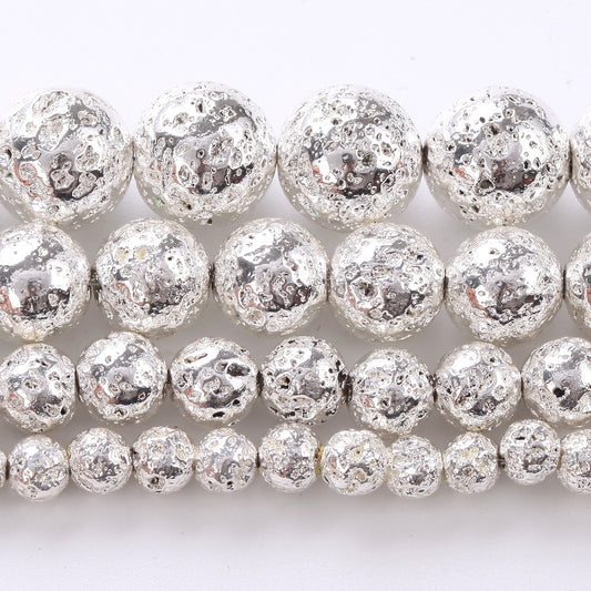 Perles de pierre de lave plaquées argent 4 mm 6 mm 8 mm 10 mm 15''