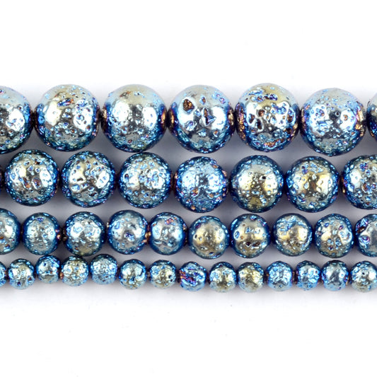 Perles de pierre de lave plaquées bleues 4 mm 6 mm 8 mm 10 mm 15''