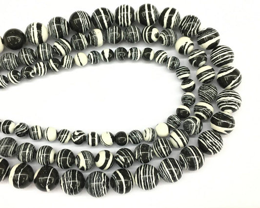 Malachite noire et blanche 4 mm 6 mm 8 mm 10 mm 12 mm 15''