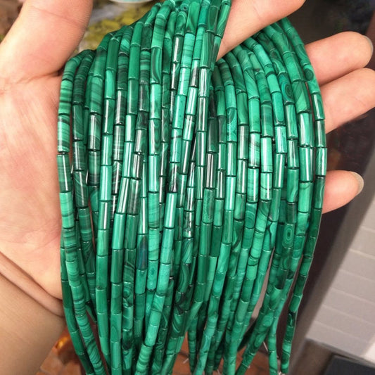 Perles tubulaires en malachite véritable 4x13 mm 15''