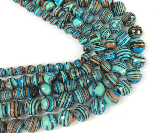 Perles à facettes en malachite rayée bleue 4 mm 6 mm 8 mm 10 mm 12 mm 15''