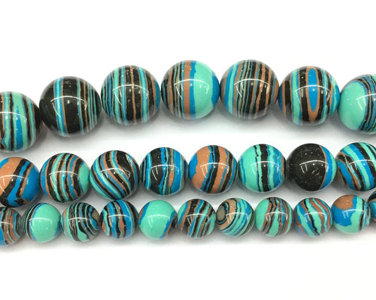 Perles de malachite rouge et bleue 4 mm, 6 mm, 8 mm, 10 mm, 12 mm