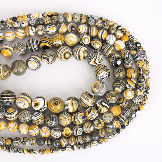 Perles de malachite jaune, noire et blanche 4 mm, 6 mm, 8 mm, 10 mm, 12 mm, 15 pouces