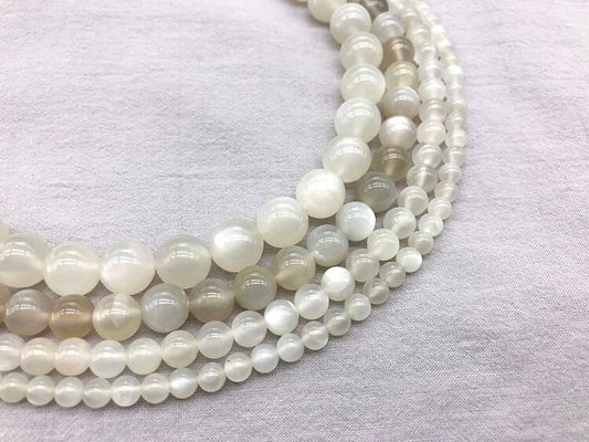 Perles de pierre de lune blanche A+ 4 mm 6 mm 8 mm 10 mm 15''