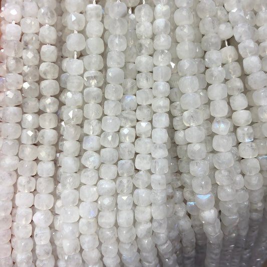 Perles à facettes en pierre de lune blanche, taille cubique, 4-5 mm, 15 pouces