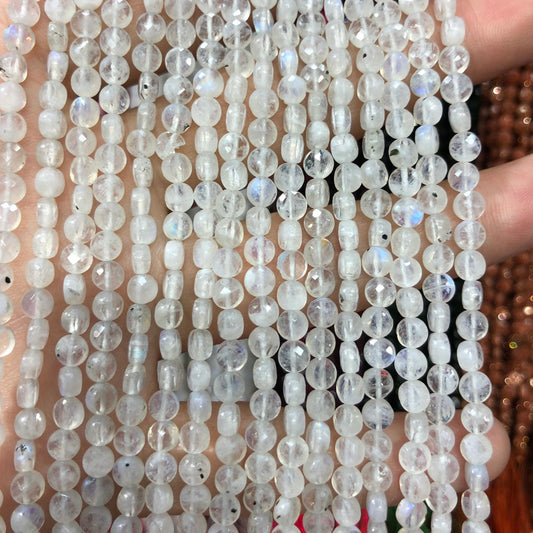 Perles à facettes en pierre de lune blanche de 4 mm, belle coupe, 15 pouces