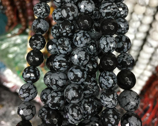 Perles à facettes en obsidienne flocon de neige 6 mm 8 mm 10 mm 15''