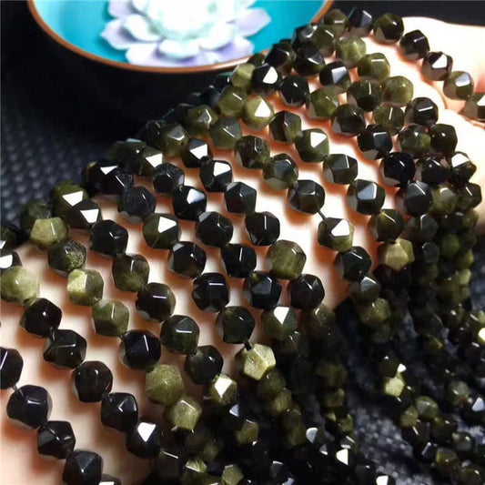 Perles à facettes en obsidienne dorée 6 mm 8 mm 10 mm 15''