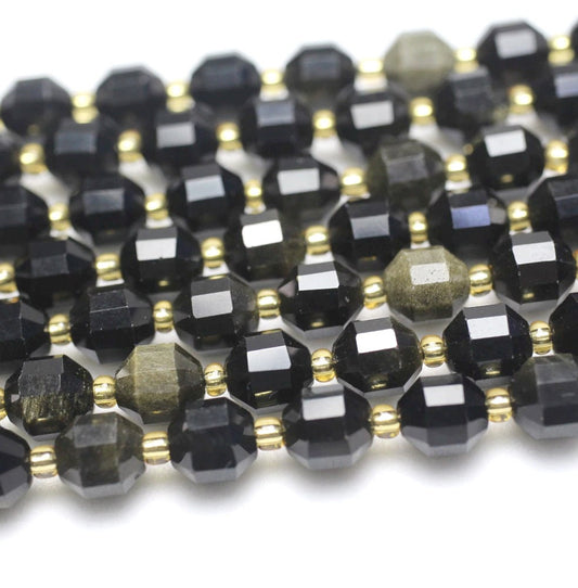 Perles à facettes en tube d'obsidienne dorée 8 mm 10 mm 15''