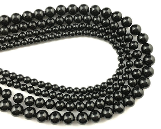 Perles d'onyx noir, pierres précieuses naturelles, 4 mm, 6 mm, 8 mm, 10 mm, 12 mm, 14 mm