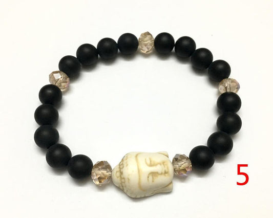 Bracelet Onyx Mat Argent Or Bouddha Bracelet 8mm 8''
