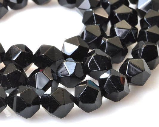 Perles à facettes en onyx noir, pierres précieuses naturelles, 4 mm, 6 mm, 8 mm, 10 mm, 12 mm, 14 mm, 38 cm