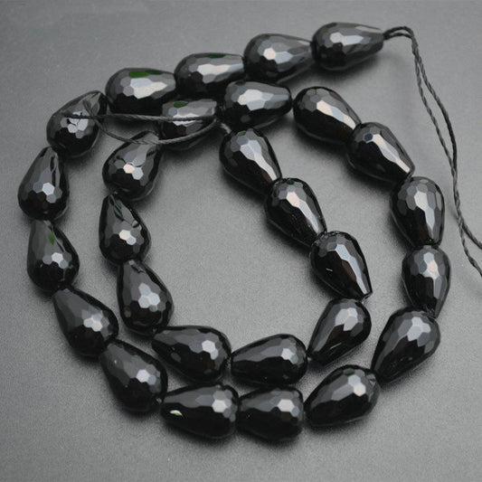 Perles à facettes en onyx noir en forme de larme, pierres précieuses naturelles, 6 x 9 mm, 8 x 12 mm, 8 x 25 mm, 10 x 30 mm