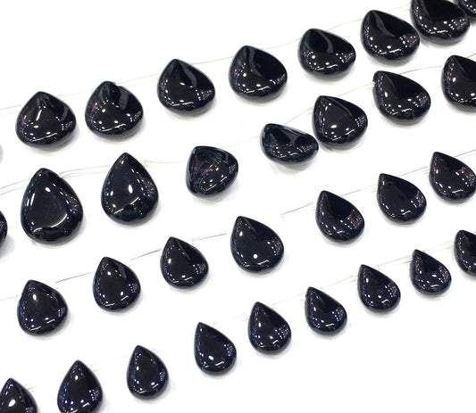 Perles en onyx noir en forme de larme, pierres précieuses naturelles, 10 mm, 12 mm, 14 mm, 16 mm, 18 mm, 20 mm, 38 cm