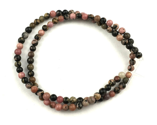Perles rondes en rhodonite noire mate 4 x 6 mm, 5 x 8 mm, 15 pouces