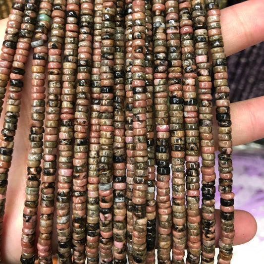 Perles rondelles en rhodonite noire 4x6mm 5x8mm