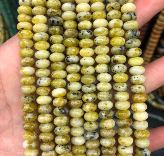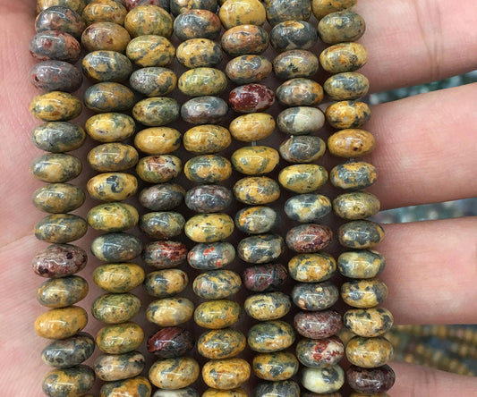 Perles rondelles en jaspe léopard jaune 4 x 6 mm 15 pouces
