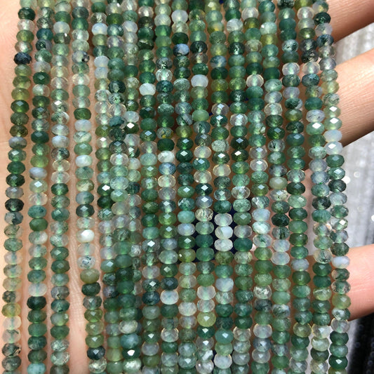 Perles à facettes en agate mousse, belles rondelles taillées, 2 x 3 mm, 3 x 4 mm, 38 cm