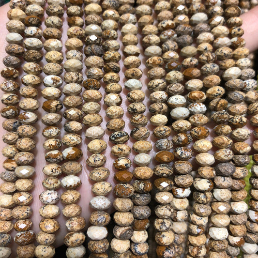 Perles à facettes en jaspe photo, rondelles 4 x 6 mm, 38 cm