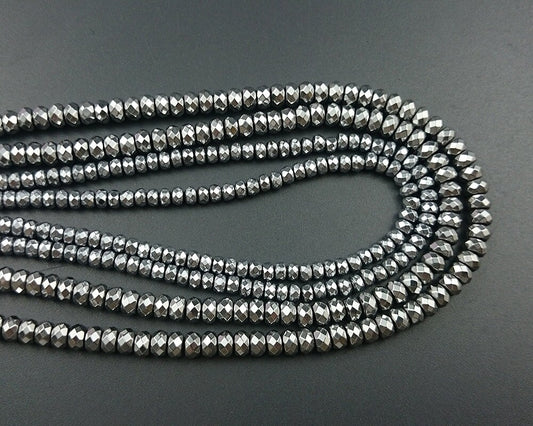 Perles à facettes en hématite argentée, rondelles 2x4mm, 3x4mm, 3x6mm, 15''