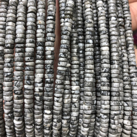 Perles rondelles en jaspe de soie gris 2x4 mm 15''