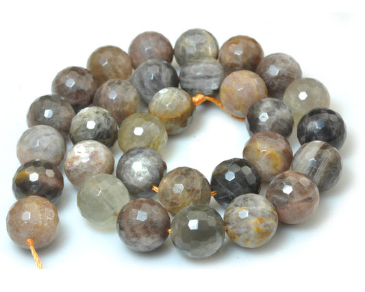 Perles à facettes en pierre de soleil grise 6 mm, 8 mm, 10 mm, 12 mm, 15 pouces