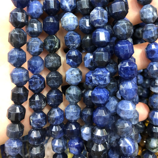 Perles à facettes en tube de sodalite, pierres précieuses naturelles, 9-10 mm, 15 pouces