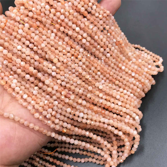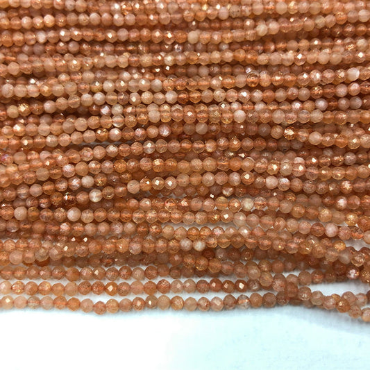 Perles à facettes en pierre de soleil 2 mm 3 mm 4 mm 15''