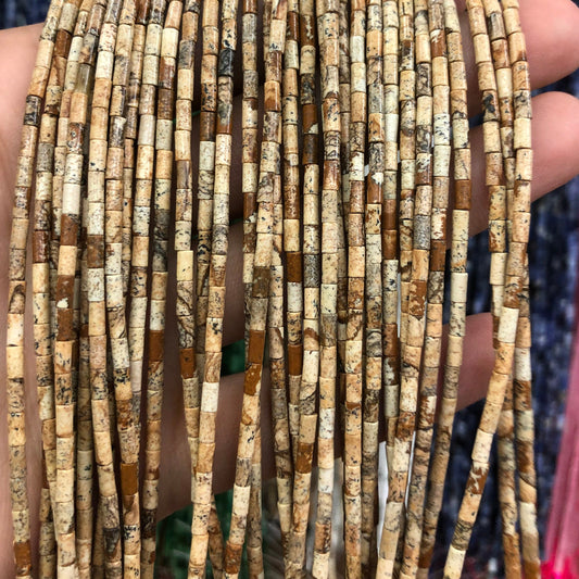 Perles tubulaires en jaspe photo 2x4 mm 15''