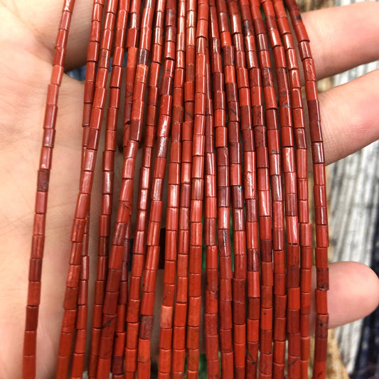 Perles tubulaires en jaspe rouge 2x4 mm 15''