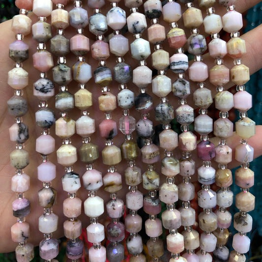 Perles à facettes en tube d'opale rose, pierres précieuses naturelles, 6 mm, 8 mm, 10 mm, 15 pouces