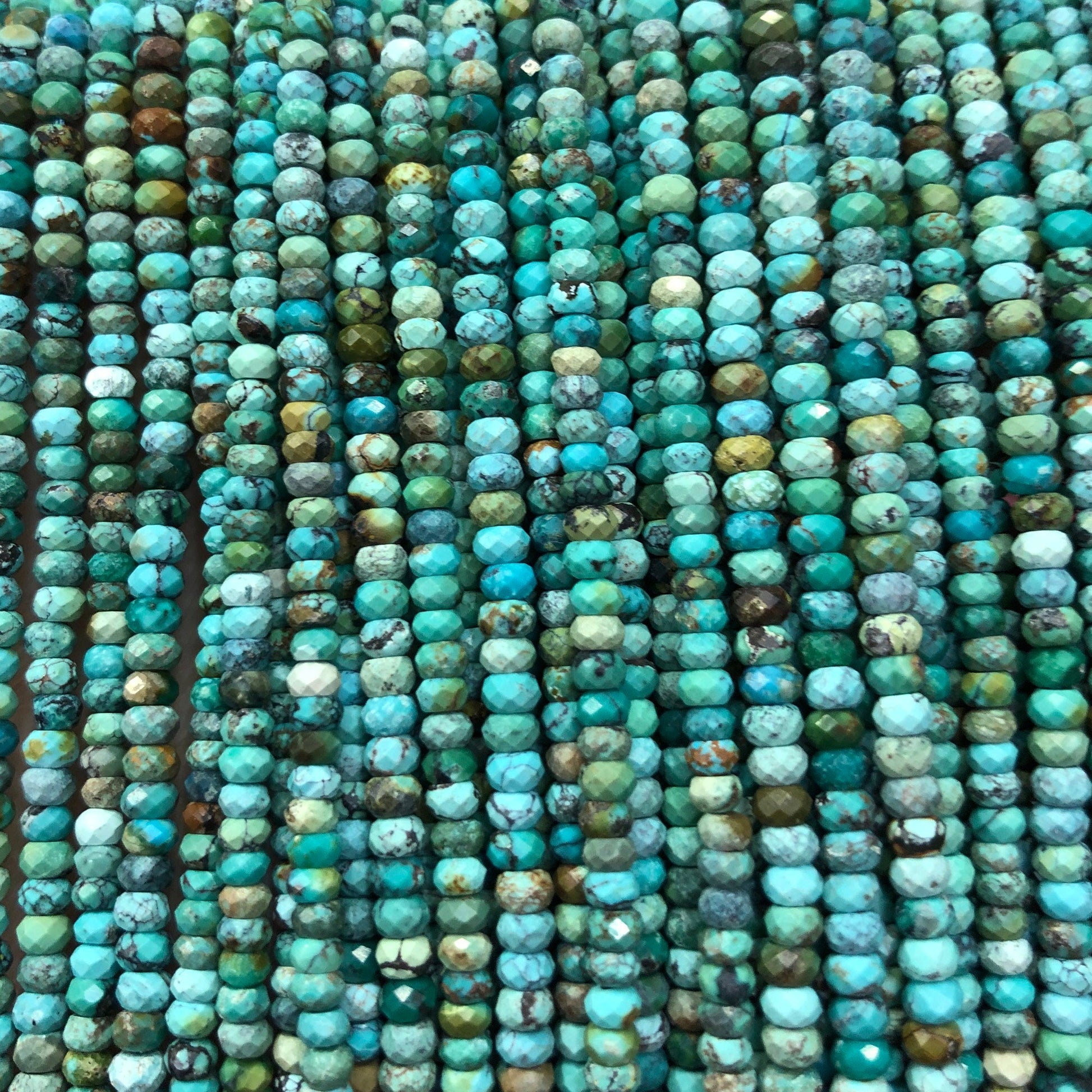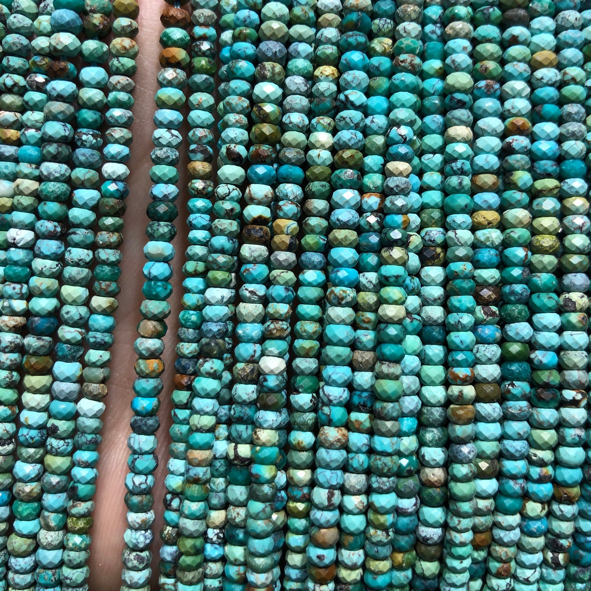 Perles à facettes en véritable turquoise 2 x 3/4 mm 15 pouces