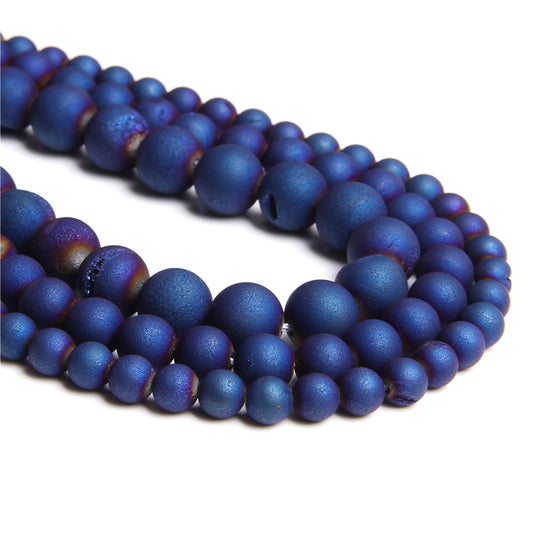 Blue Druzy Agate Beads 6mm 8mm 10mm 12mm 14mm