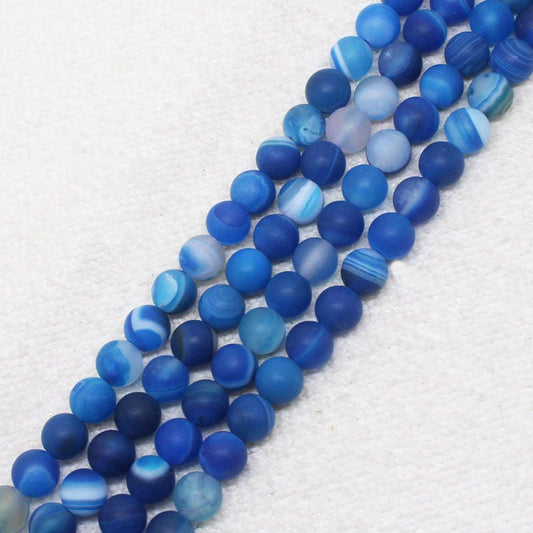 Blue Striped Agate Matte Beads 6mm 8mm 10mm 12mm 15''