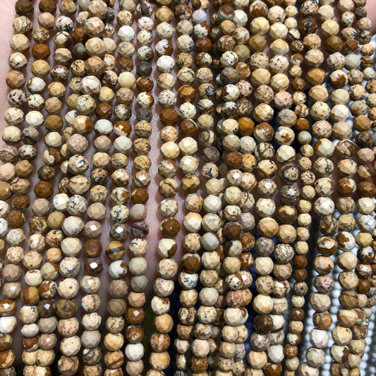 Picture Jasper Faceted Beads 2mm 3mm 4mm 15''